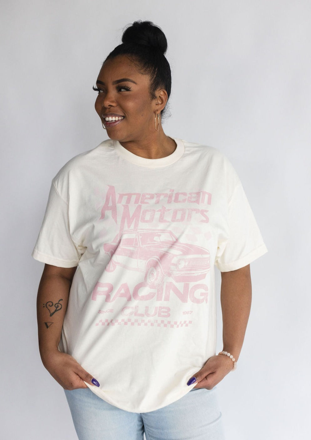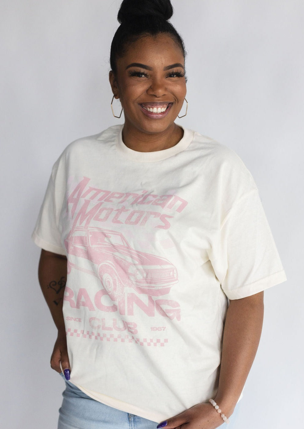 You'll love this timeless graphic that features a vintage and nostalgic design! She's hand drawn and a one of a kind graphic, printed on an ivory American Apparel tee.