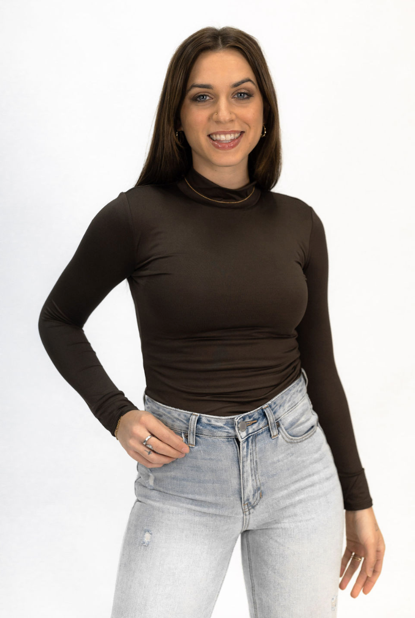 Our black classic bodysuit is perfect for any occasion and comes in multiple colors. This bodysuit features a high neckline and long sleeves. All bodysuits are final sale.