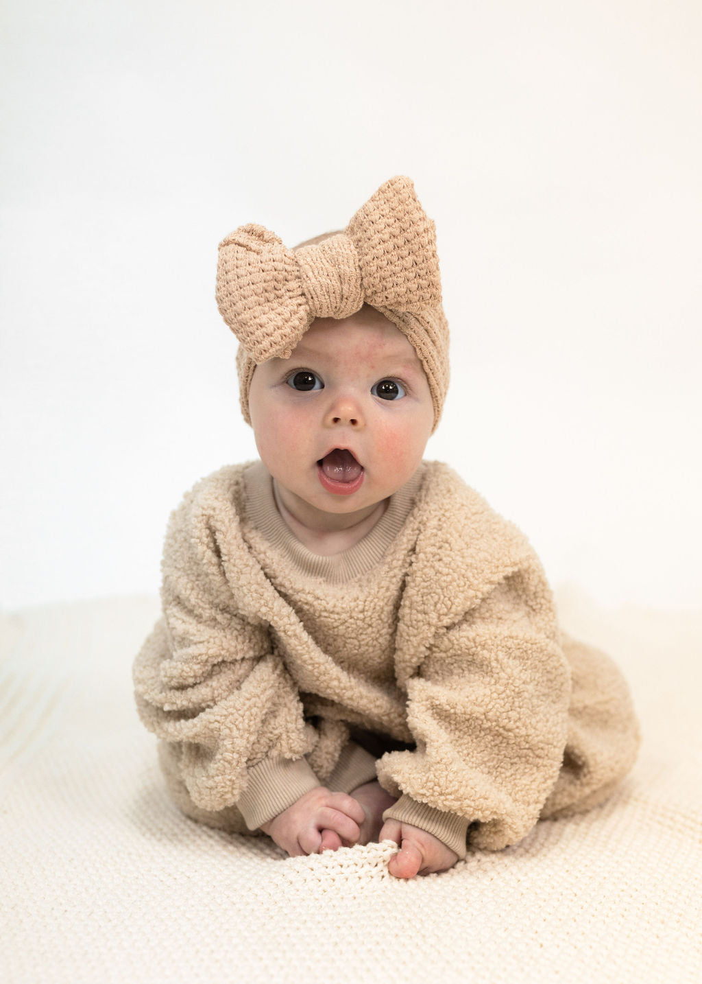 Our Sweeter Than Honey Waffle Bow Headband is the perfect accessory to complete your little one's outfit. They are chunky, oversized, and have a double knot design. Designed to be soft and stretchy with comfort and style in mind.