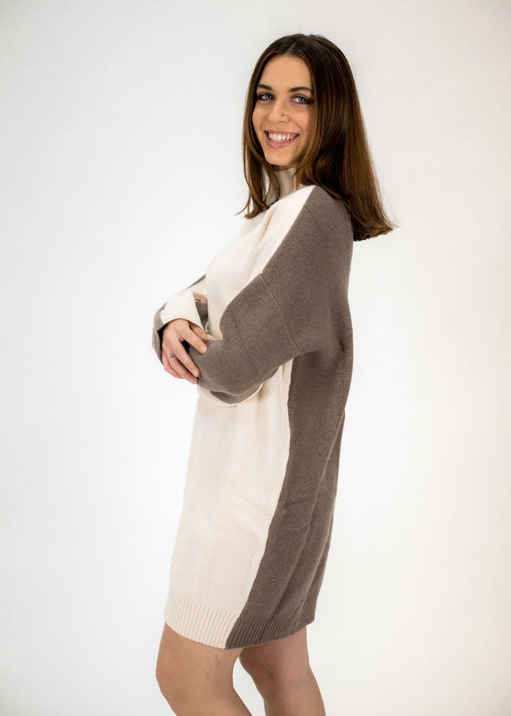 Our Virtue Colorblock Sweater Dress is the perfect addition to your closet this winter. With it's long sleeves and colorblock knit material, it will keep you plenty warm on chilly days. Dress it up with a pair of boots or dress it down with sneakers. Either way, you are sure to love it! Our model is pictured wearing a size small.
