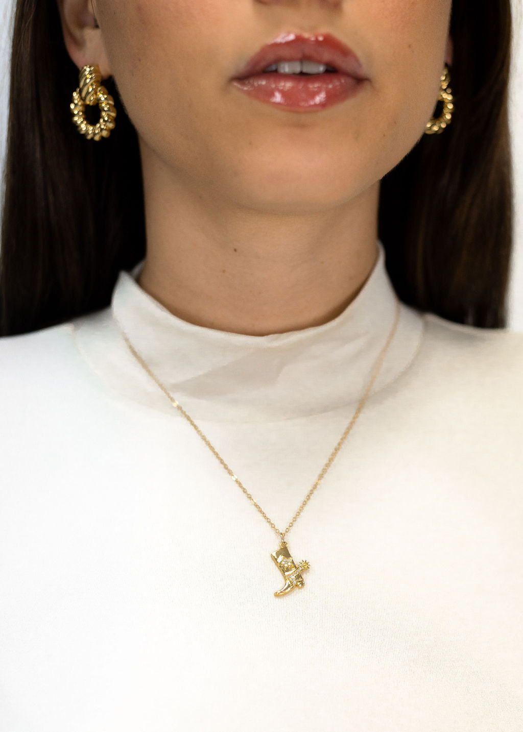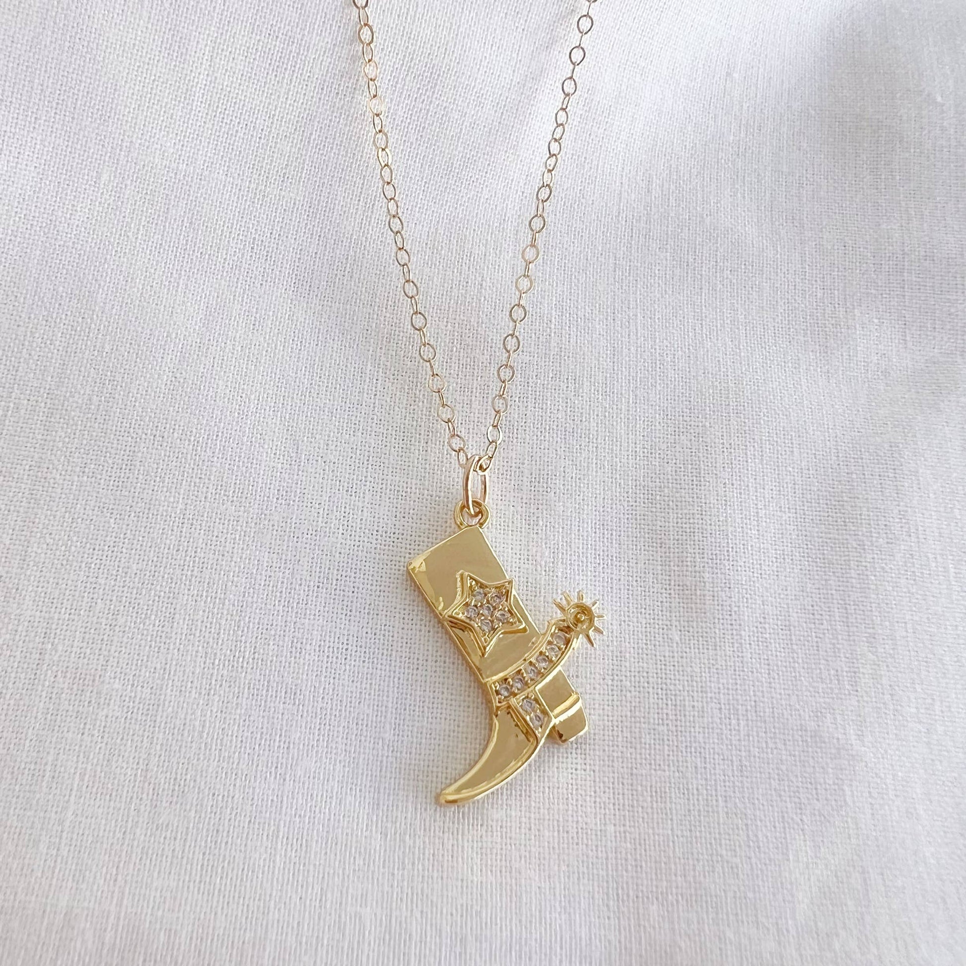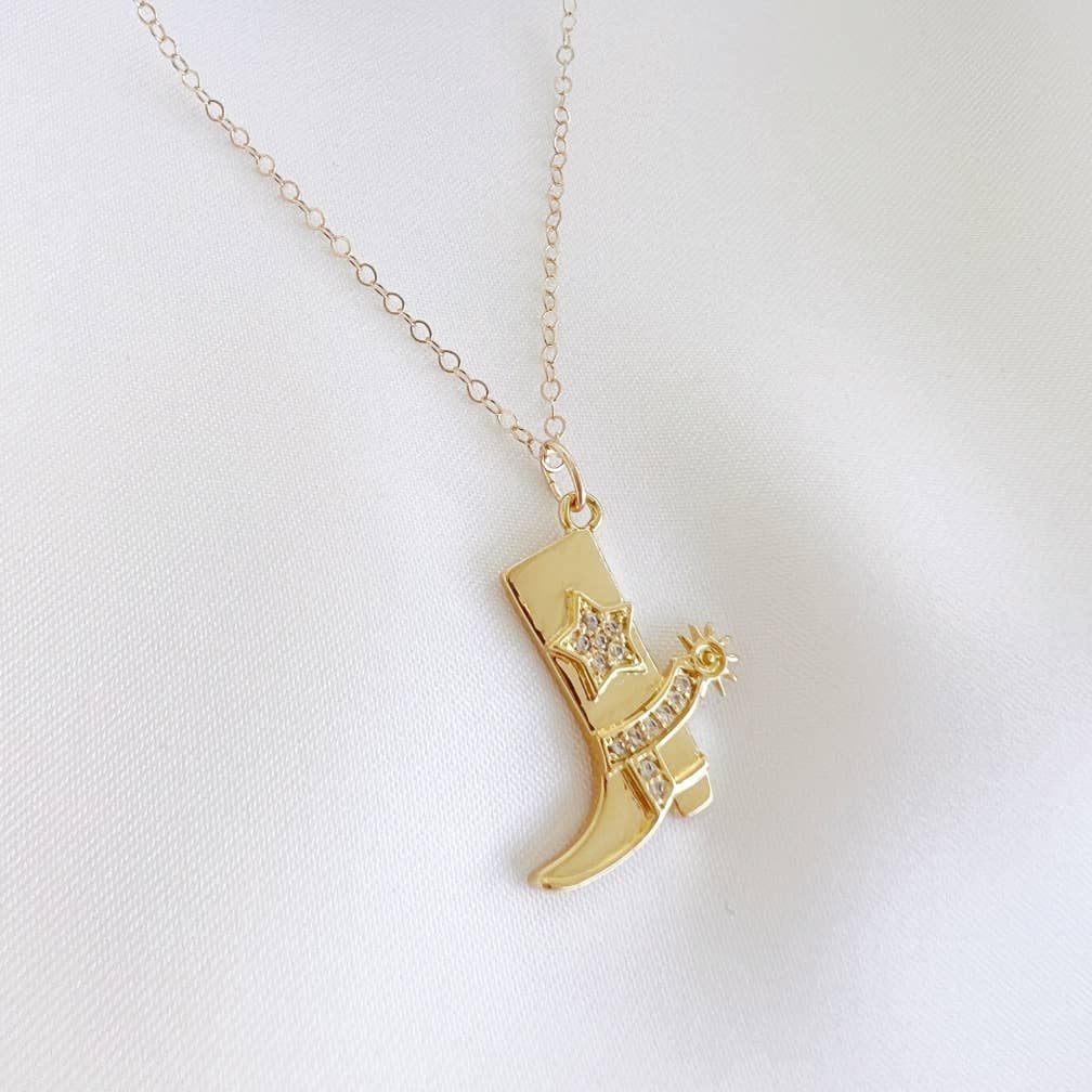 The gold necklace you've been looking for! Our Country Girl Cowboy Boot Necklace has a pendant strung on a 14k gold filled dainty cable chain with a spring clasp. This chain does not turn, tarnish, or rust. Handmade with the highest standards and quality materials.