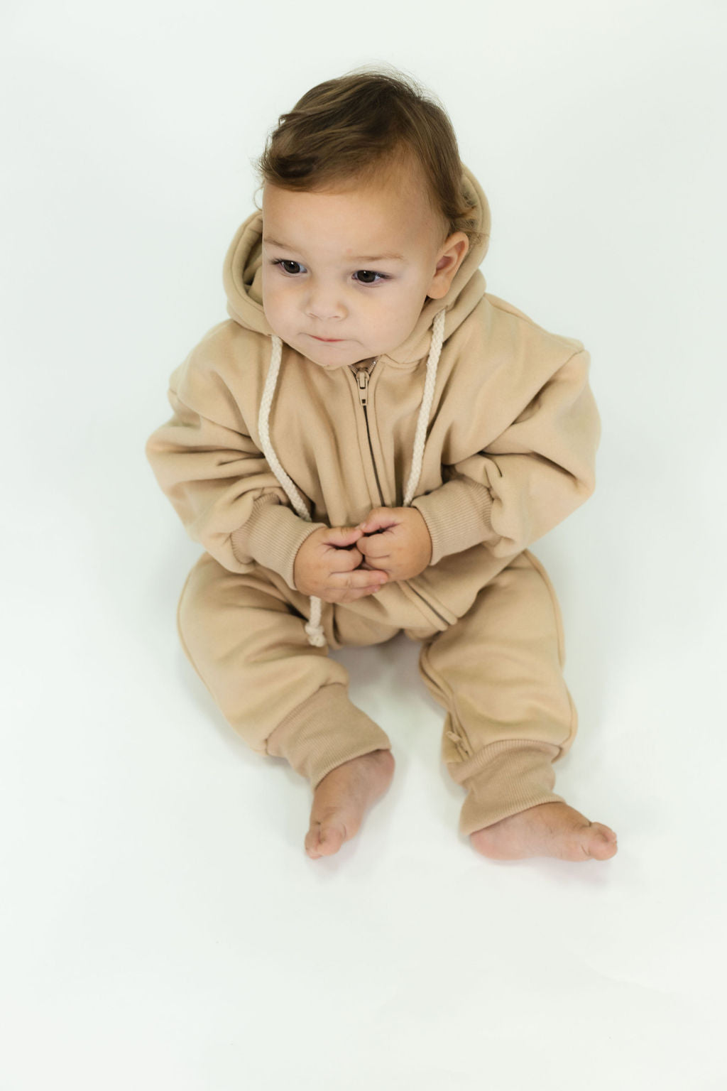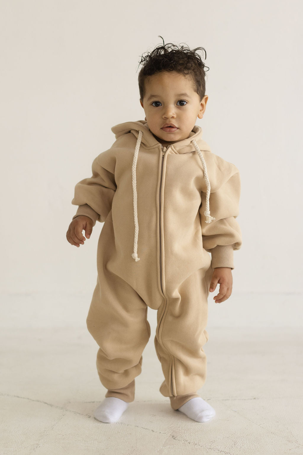 Our best selling Jesus Loves Me hooded jumpsuit will be such a staple in your little ones closet. This hooded sweater jumpsuit has a zipper closure and is lined with fleece + 100% cotton. Runs true to size. If you prefer a loose and oversized fit, we recommend sizing up.