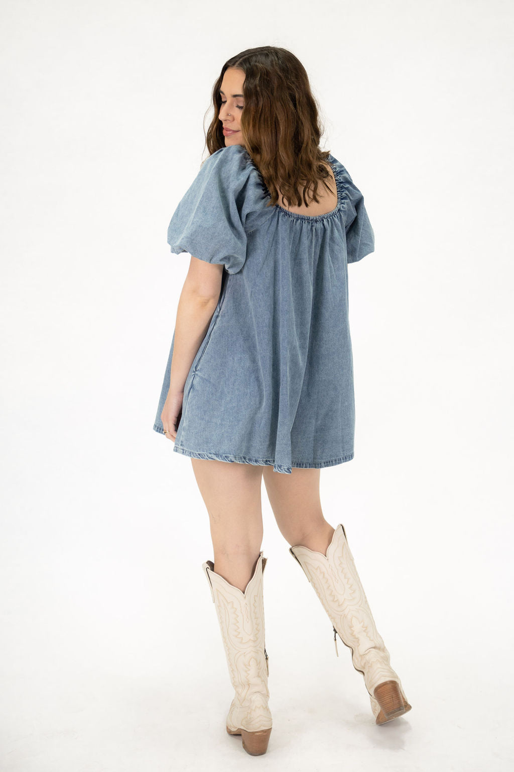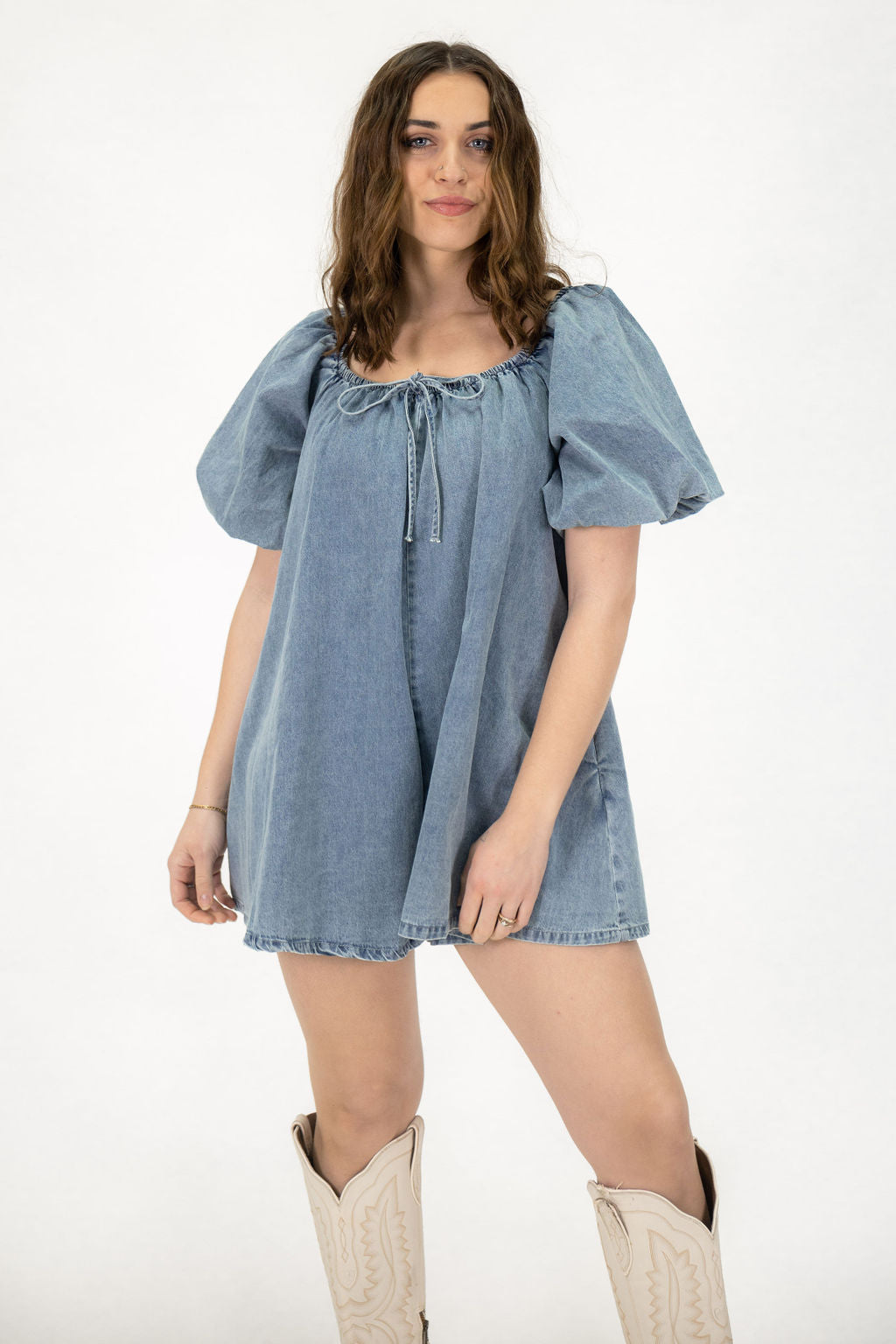 Effortlessly stylish and full of Western charm, the Trailblazer Denim Puff Sleeve Romper is the perfect blend of grace and grit. Designed with a relaxed fit for all-day comfort, this romper features soft, lightweight denim that moves with you. The statement puff sleeves add a feminine touch. Whether you're out on the ranch, strolling through town, or dressing it up for a night out, this romper is your go-to for effortless, faith-filled fashion.