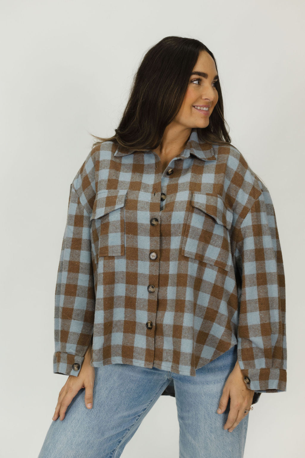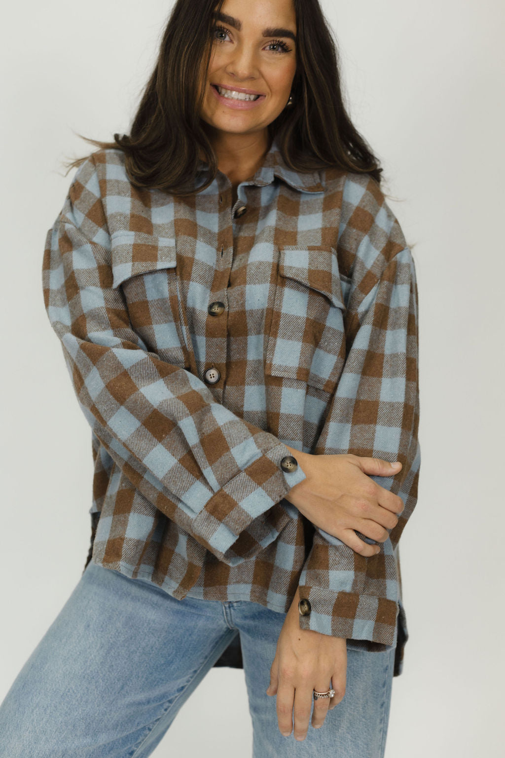 This oversized flannel will be your favorite fall piece! Wear it buttoned up or around your waist with your favorite pair of jeans. Our model is wearing a size large.