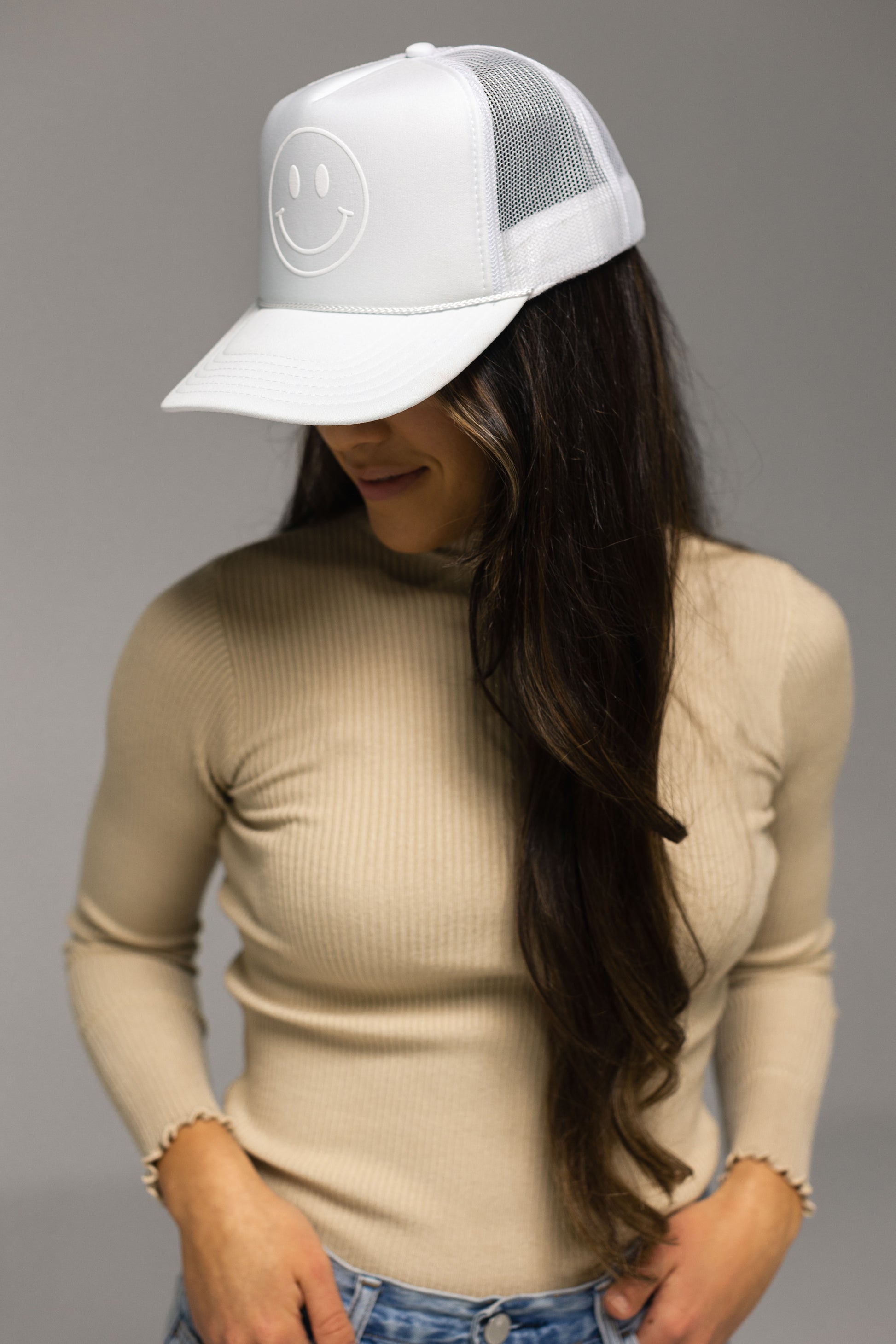 Introducing our Joyful Smiley Face Trucker Hat! Whether you're running errands around town, picking your kids up from school, or at the beach... this hat is designed to keep you comfortable, protected from the sun, and be a reminder that the joy of the Lord is our strength.