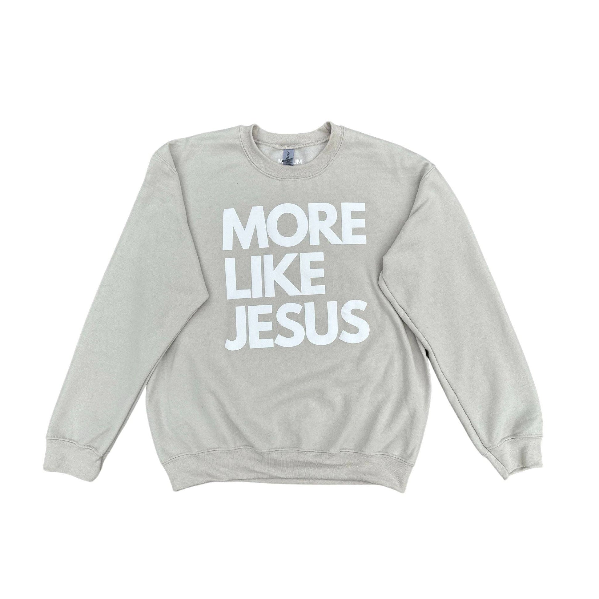 "Imitate God, therefore, in everything you do, because you are His dear children. Live a life filled with love, following the example of Christ. He loved us and offered himself as a sacrifice for us, a pleasing aroma to God." - Ephesians 5:1-2 | Our More Like Jesus Sweatshirt Overcomes Shirt runs true to size and has a unisex fit. Wear this with your favorite pair of jeans or cargo pants and sneakers.