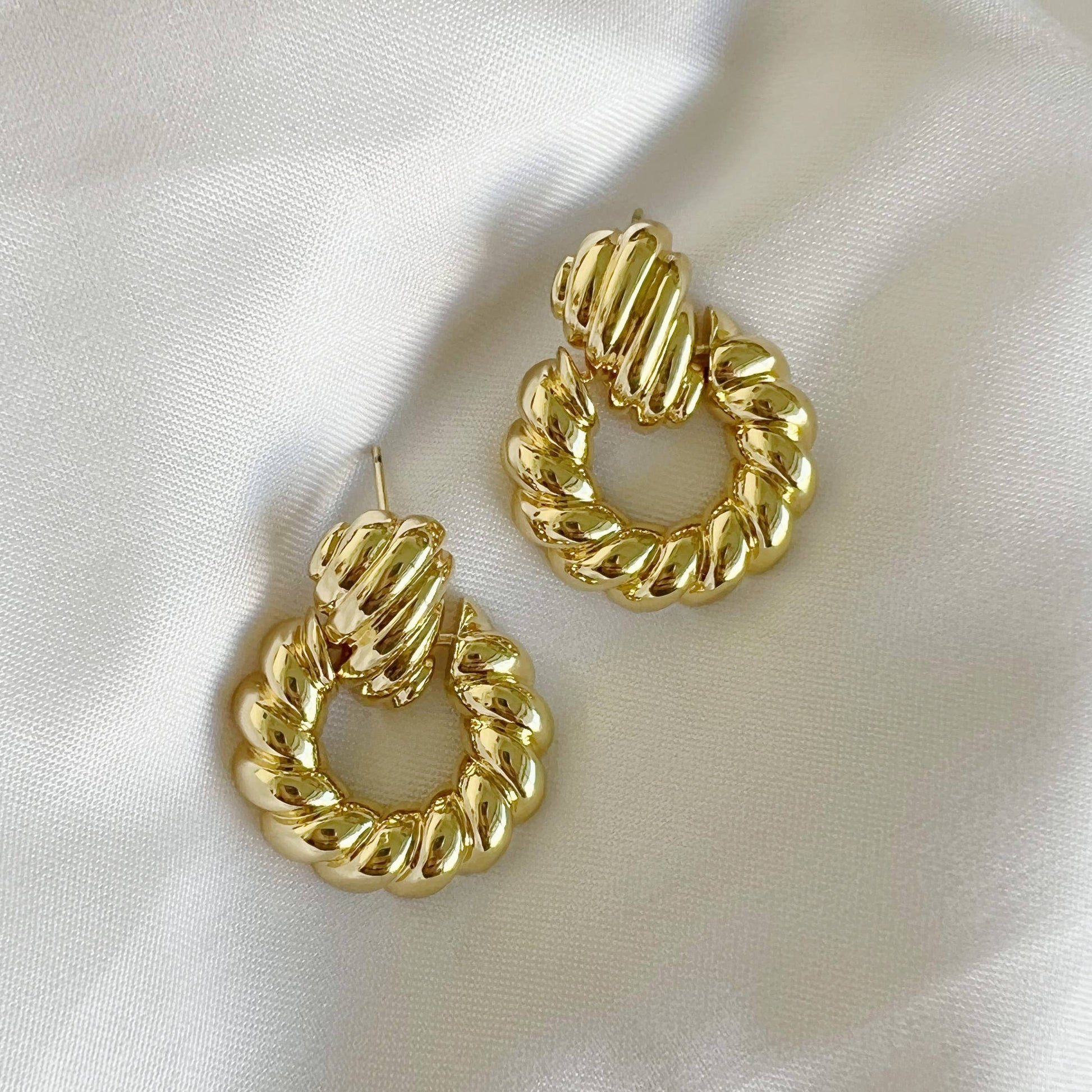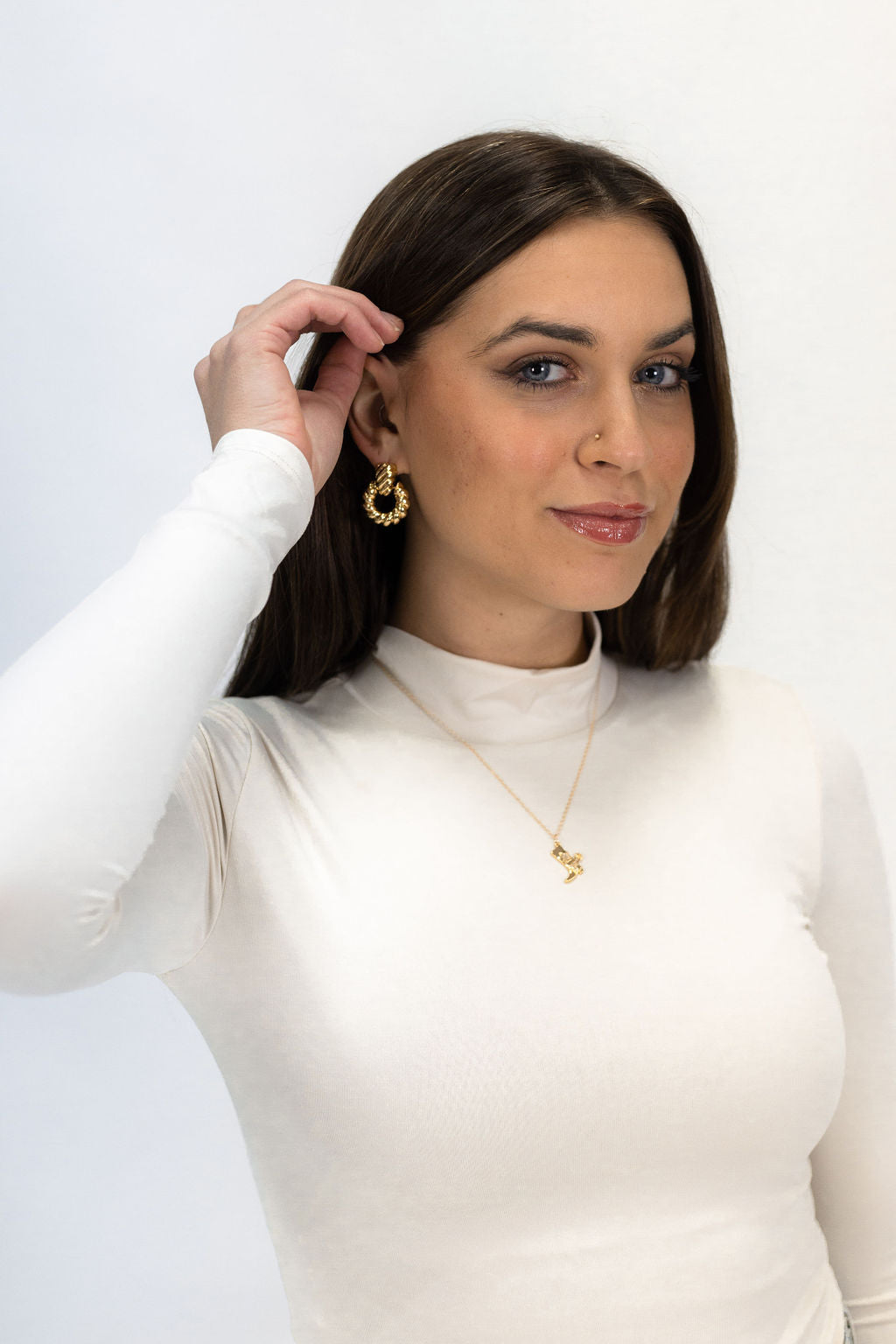 Our Croissant Gold Earrings are 14k gold filled and lightweight. They have a hinge backing, are lead + nickel free, and are hypoallergenic. They will not tarnish, peel or rust, so you can wear them with confidence whether at the beach or at church!