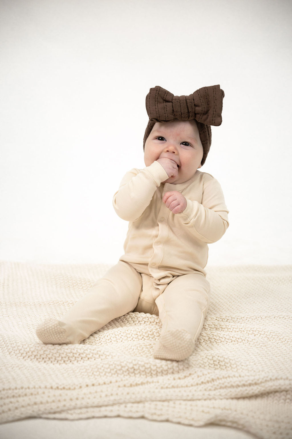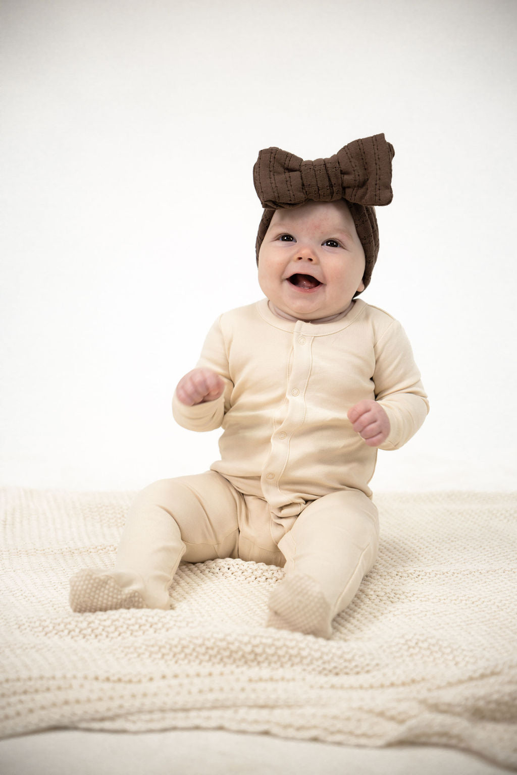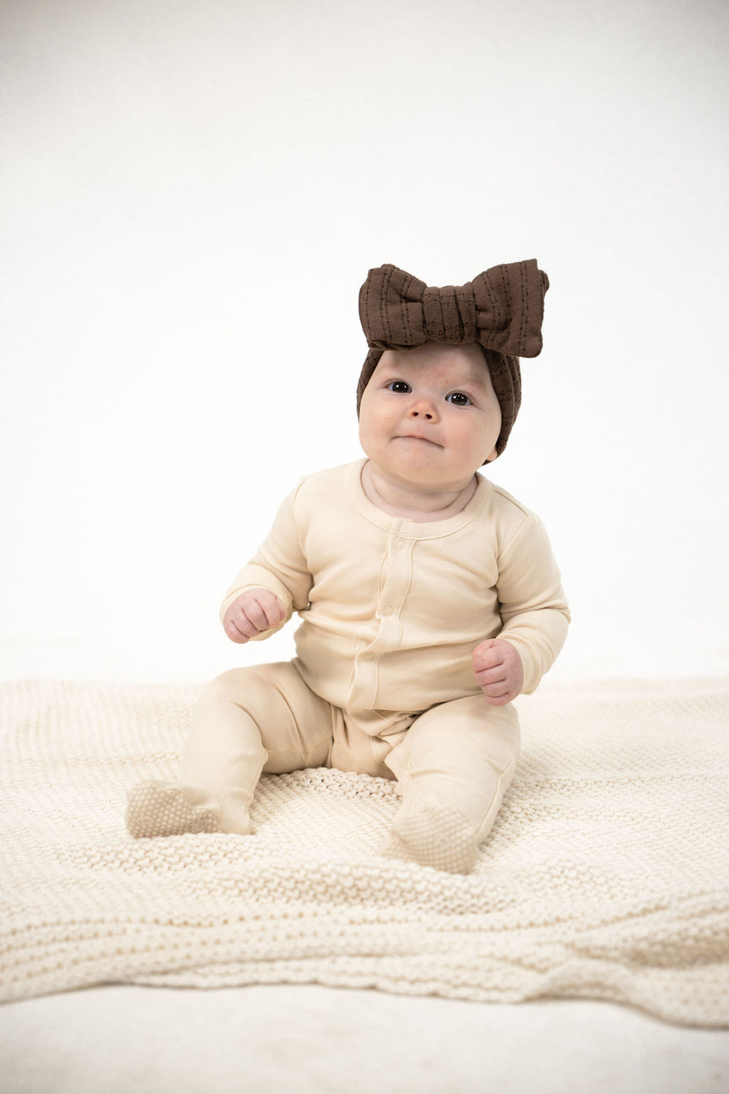 Our Harlow Footed Sleeper is crafted from 100% certified organic cotton for a soft, breathable feel that keeps your little one cozy around the clock. Designed with comfort and function in mind, it features nickel-free snaps for easy changes, footie grips on sizes 6–12 months and up for early walkers, and water-based dyes for long-lasting color. Naturally hypoallergenic and gentle on sensitive skin, each sleeper is sustainably sourced and ethically made. Machine wash cold, tumble dry low.