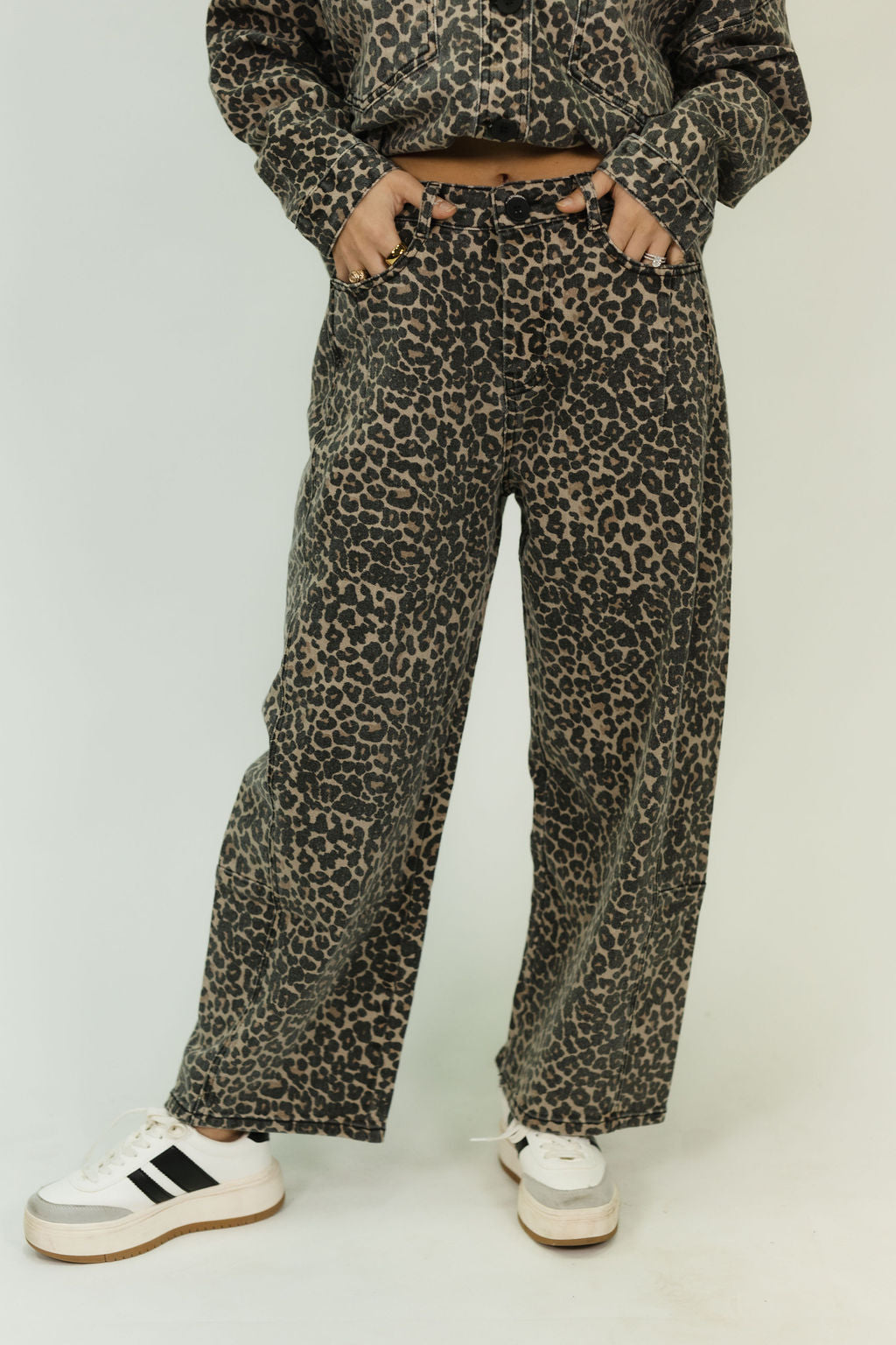 Leopard Print Barrel Jeans