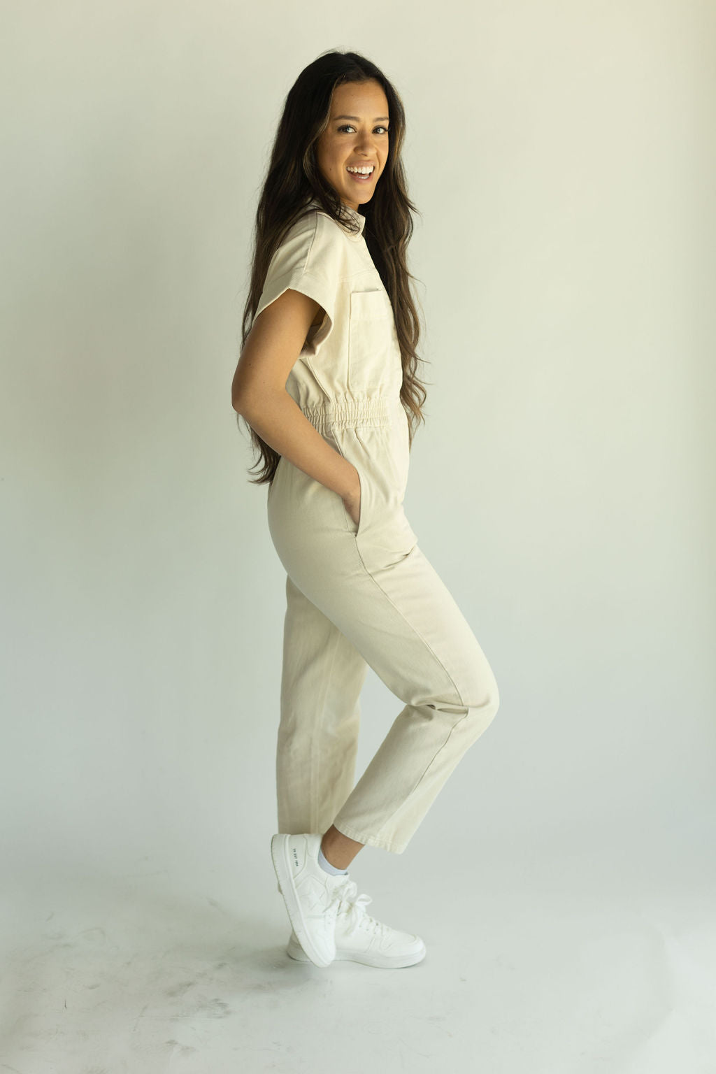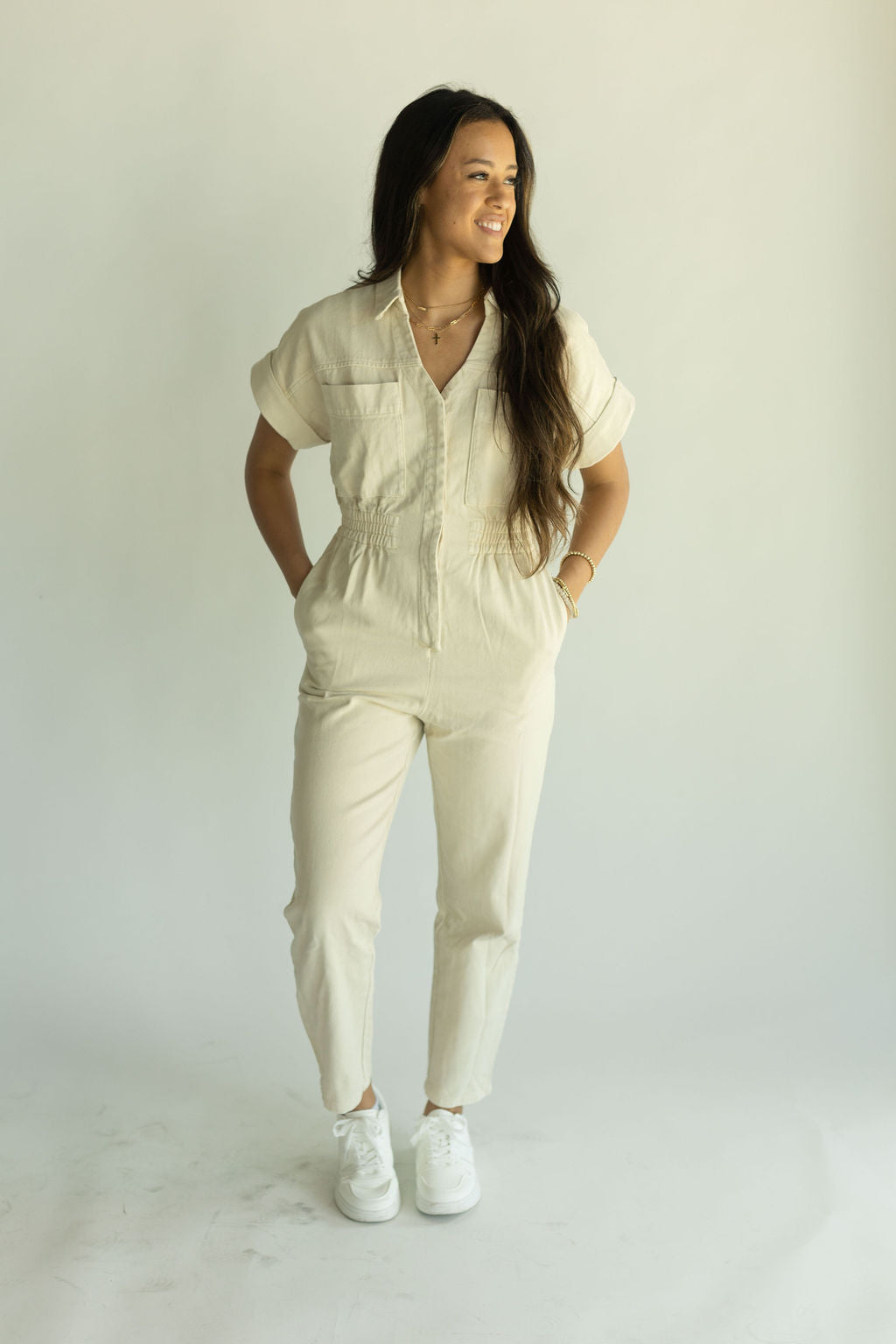 Our Parker Linen Jumpsuit is perfect for any occasion! Whether you're going to church or heading to the movies with friends -- this zip up jumpsuit can be paired with heels, sneakers, or sandals. Runs true to size and has a cinched waist. Our model is pictured wearing a size small.