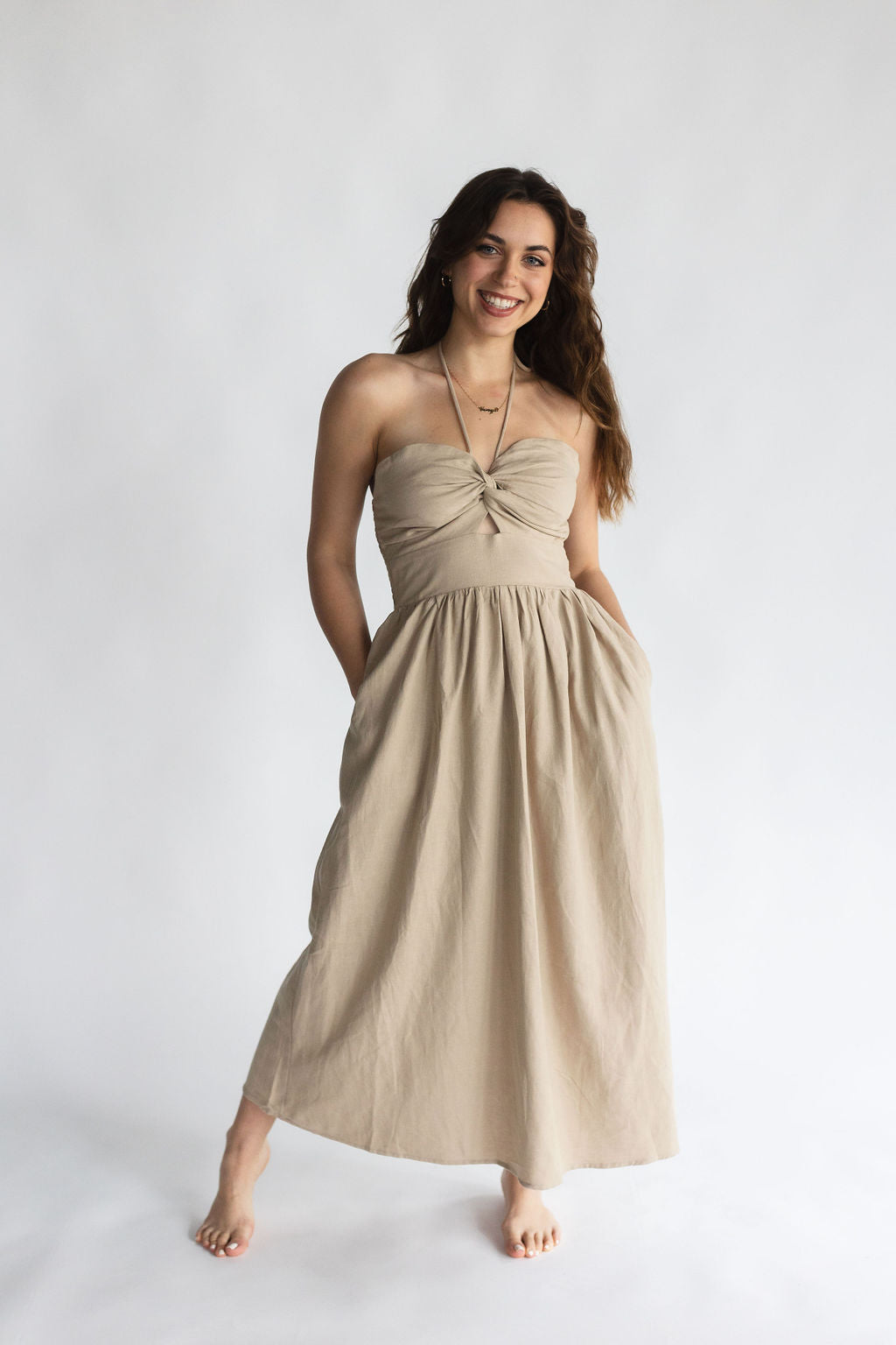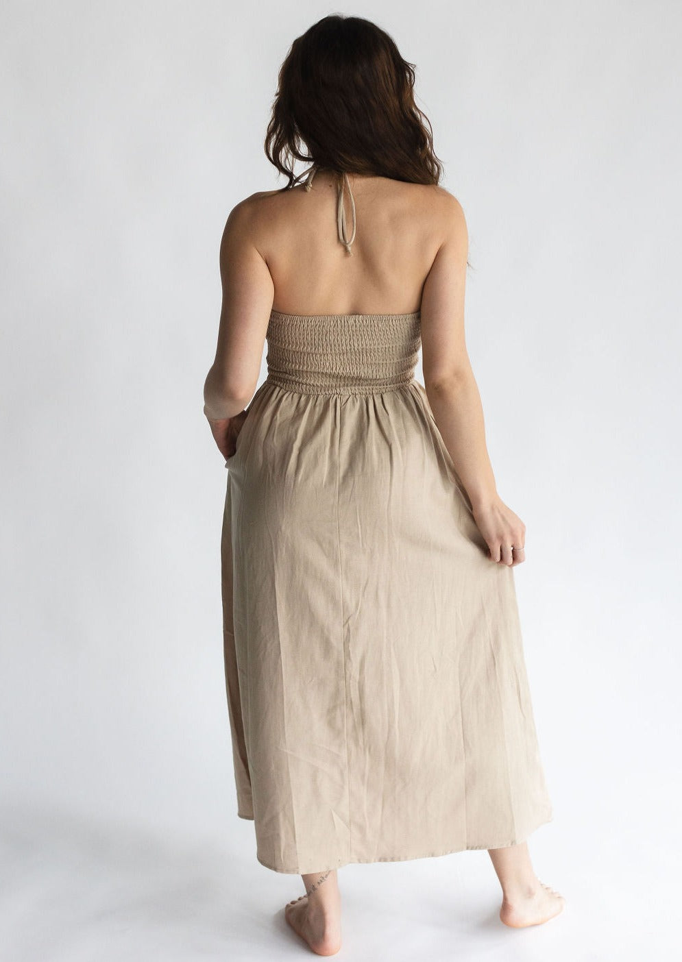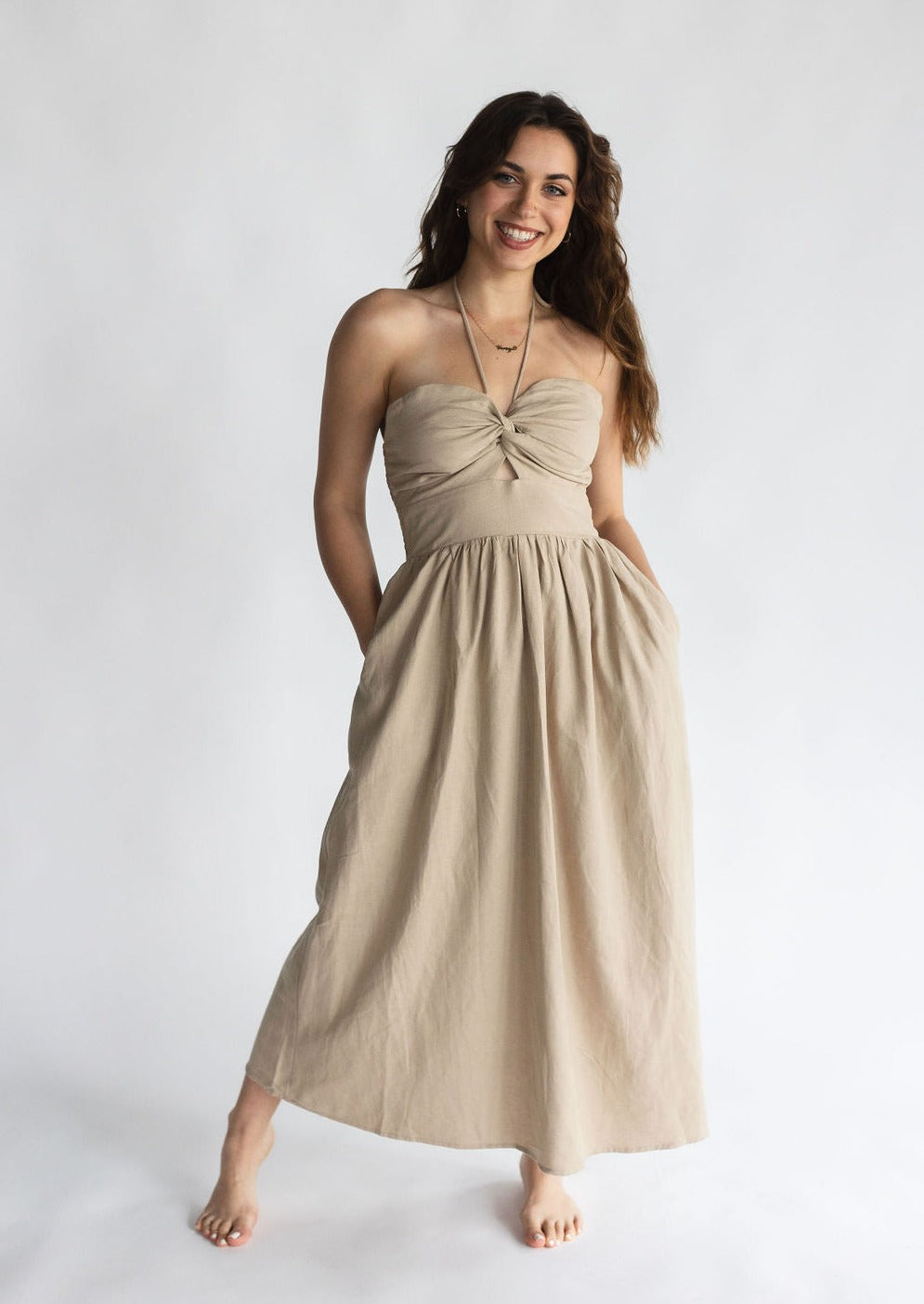 Our Reese Maxi Dress is the flowy and the perfect vacation or date night look. Pair this with your favorite wedges or sandals. Our model is pictured wearing a size small, runs true to size.