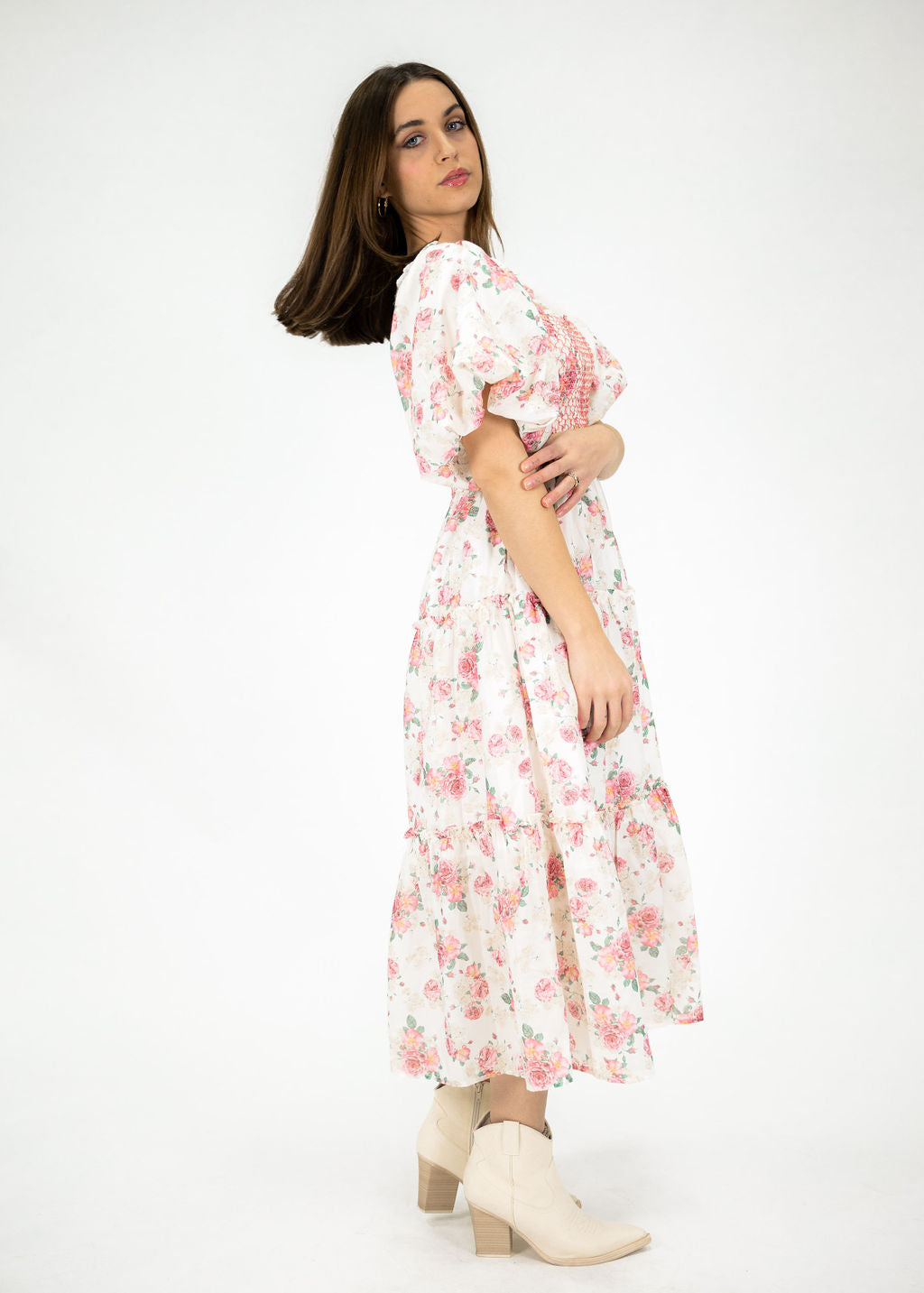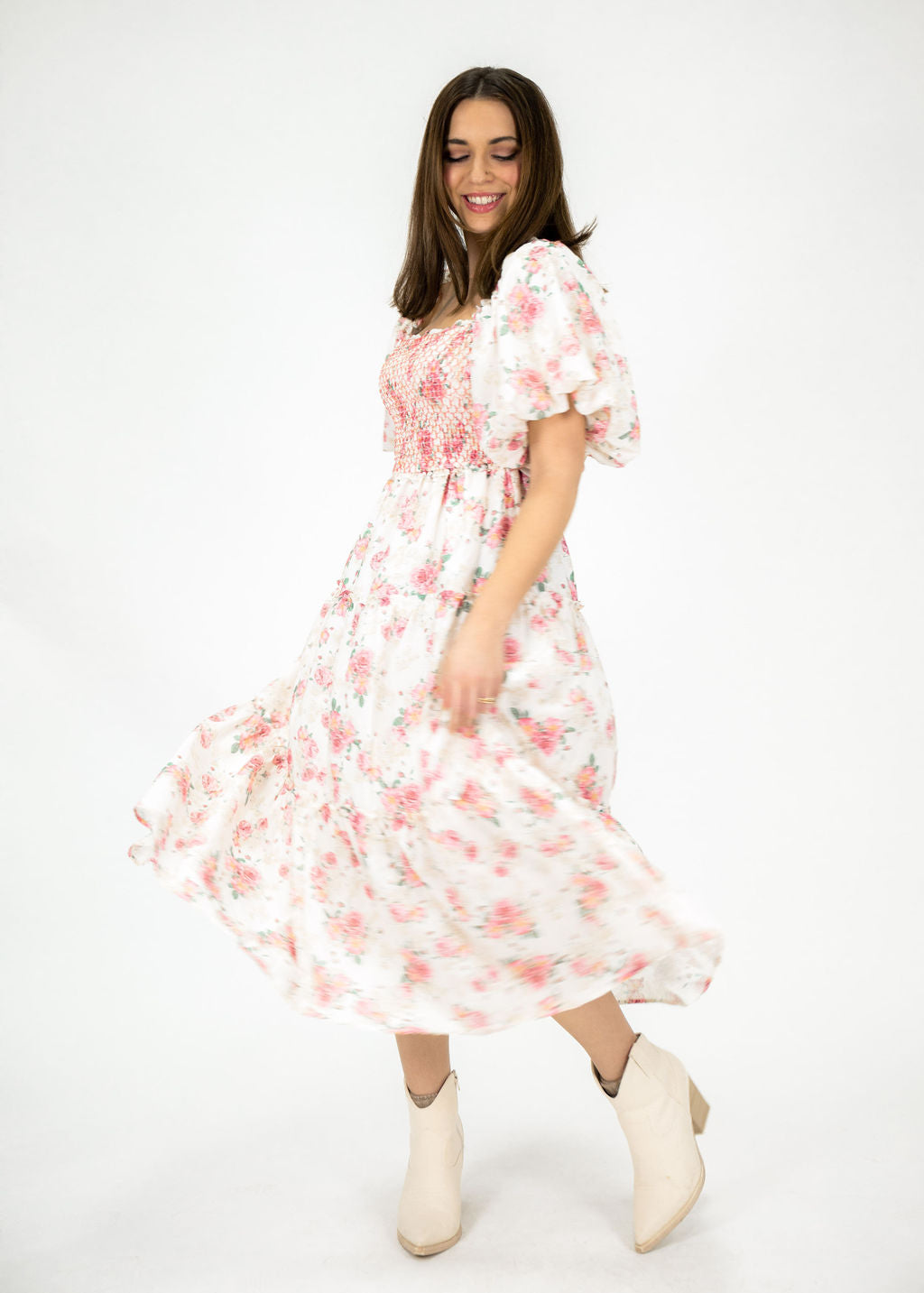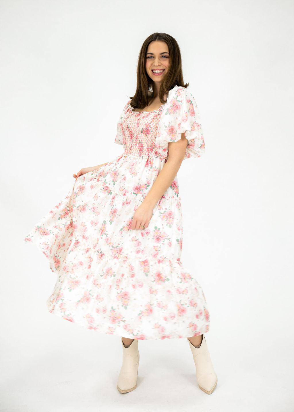 Our Selah Floral Maxi Dress will leaving you feeling classy and confident this summer. Wear this look to church or out with friends for coffee with heels or sandals. Our model is pictured wearing a size small and this dress runs true to size.