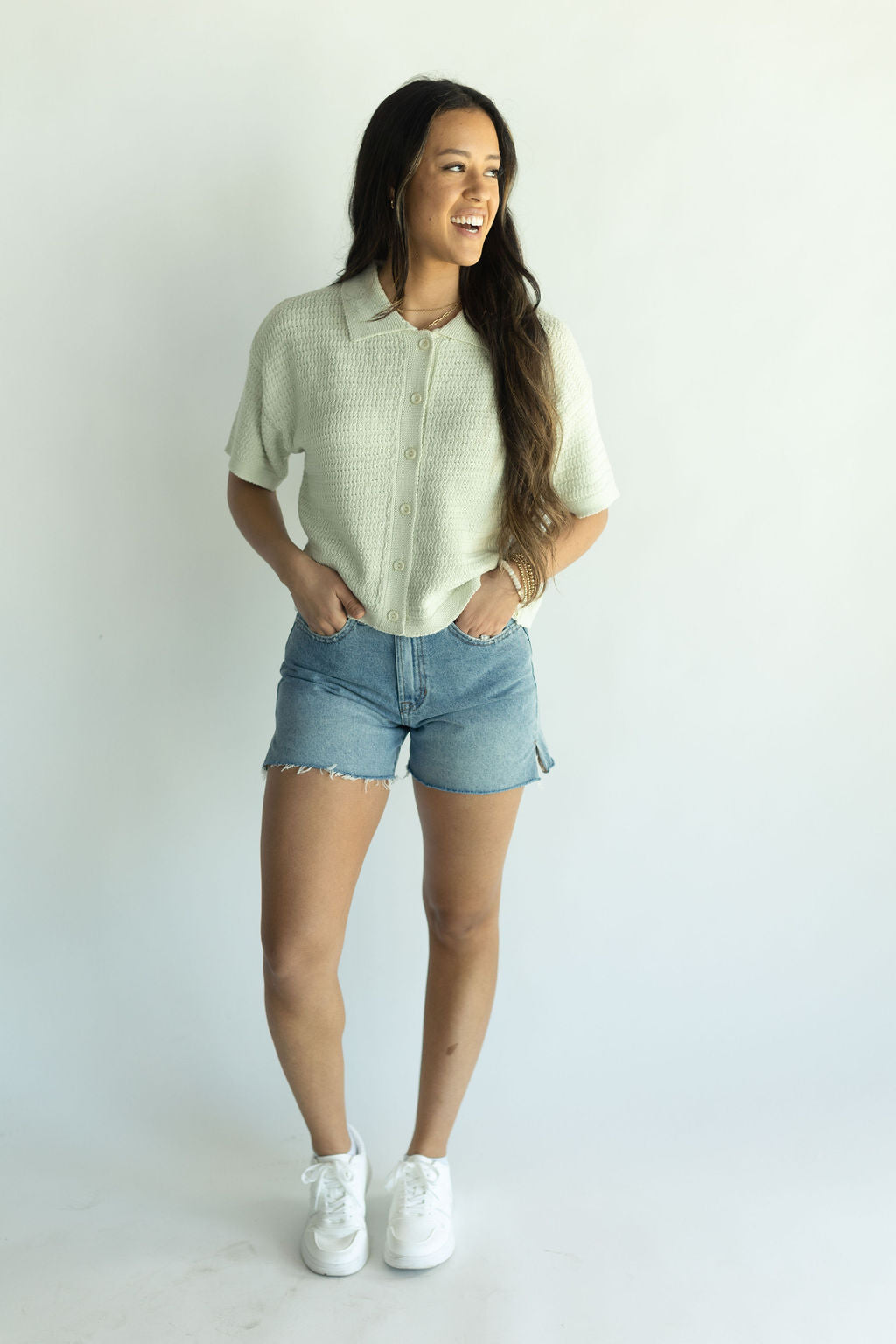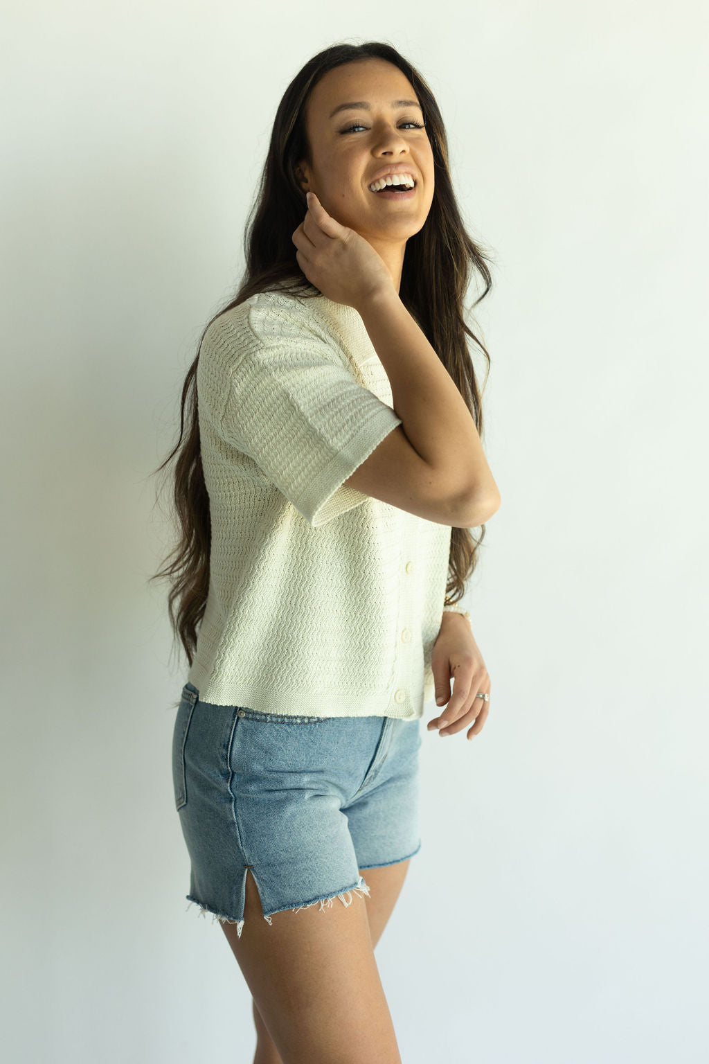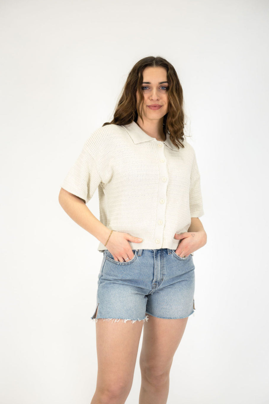 Our Sunday Knit Button Up shirt is sure to be a staple in your closet this spring. Our model is pictured wearing a size small. This top runs true to size.