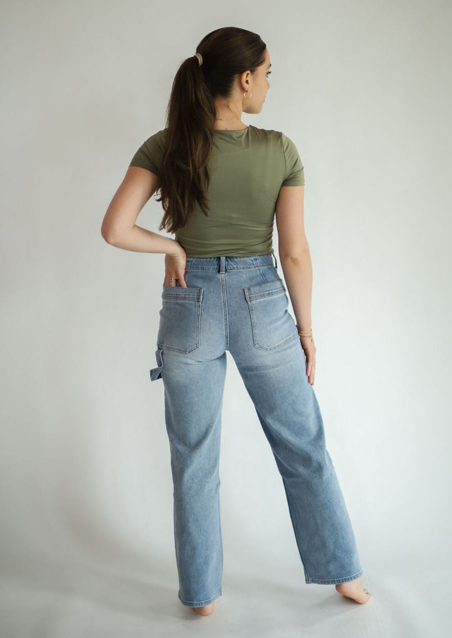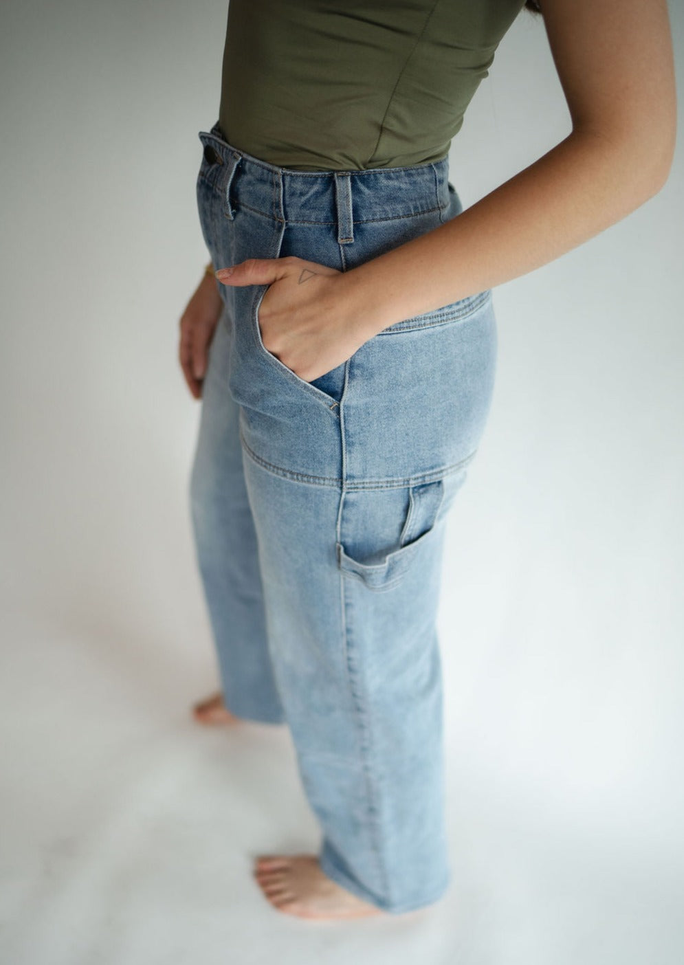 Our Noa Cargo Jeans are the perfect combination of comfort with street style. Pair these with sneakers and your favorite top for an every day look. Our model is pictured wearing a size small.