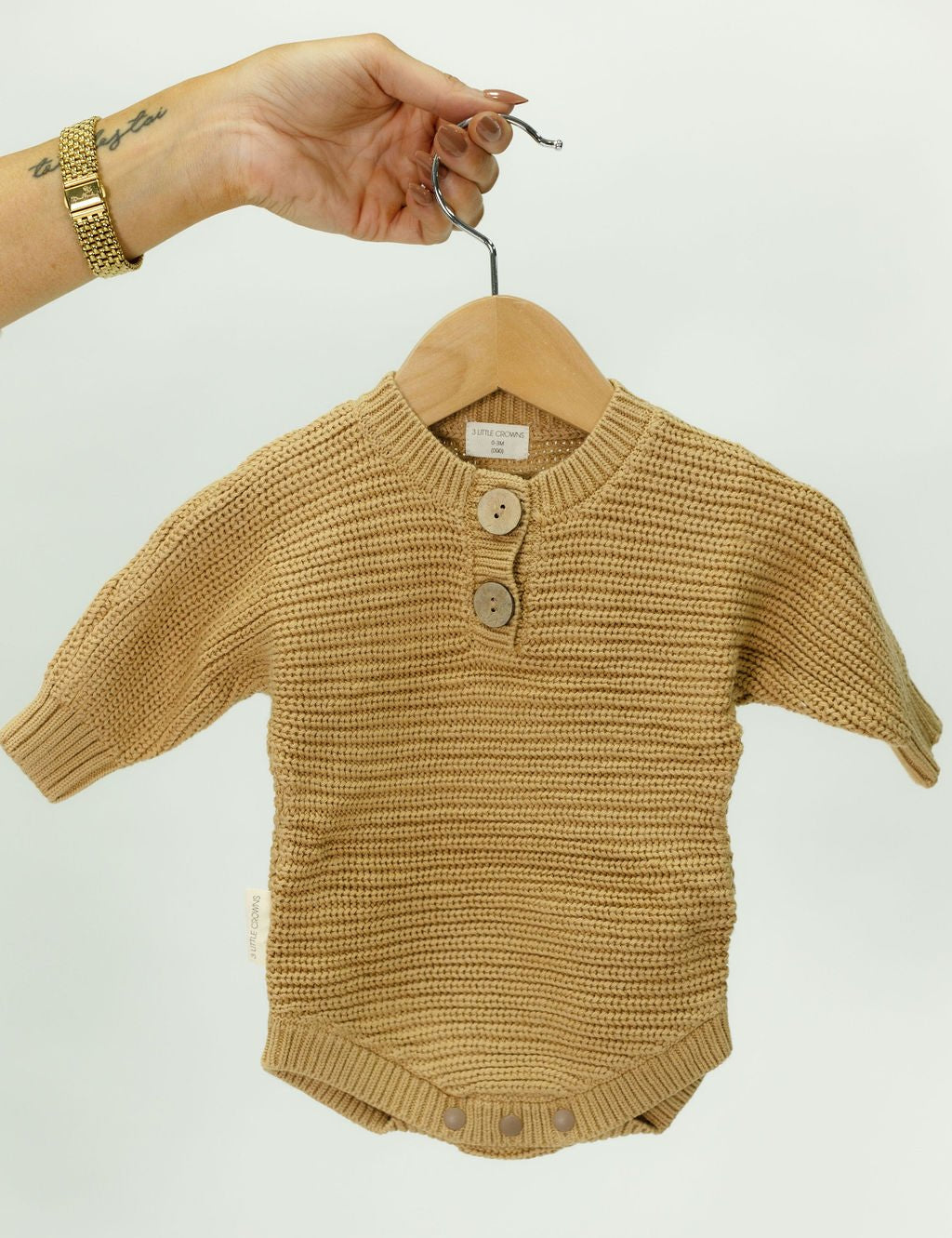 Announce to the world that your little one is here! Our Little Miracle Newborn Knit Bodysuit is the first outfit you've been looking for for your baby on the way. Available in Newborn + 0-3 Month sizes, made with 100% cotton. Pair with our matching Little Honey headband or beanie and booties.
