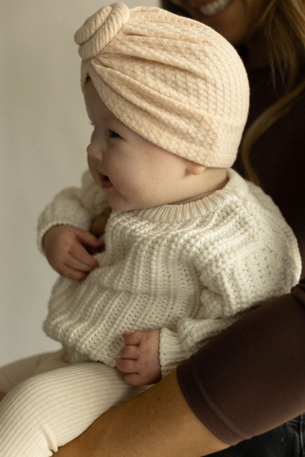 This blush pink waffle knot turban is the cutest accessory for your little one to bring out their inner fashionista. Perfect as a gift, for special occasions, or to style up your baby’s outfit.